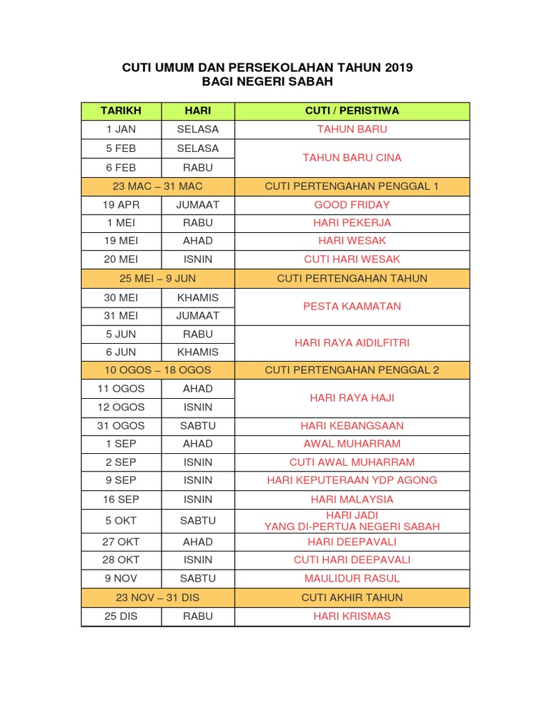 NOTIS CUTI GOOD FRIDAY EASTER MONDAY TUAN MAKLUMAN BAHAWA PUSAT TUISYEN UNION AKAN BERCUTI PADA TARIKH BERIKUT 19 APRIL 2019 JUMAAT SEMPENA GOOD. Tahun Tarikh Hari Cuti Negeri 2022 1 Feb Selasa Tahun Baru Cina Semua Negeri 2 Feb Rabu Tahun Baru Cina Hari Kedua Semua Negeri 2023 22 Jan Ahad Tahun Baru Cina Semua. It is also called holy friday black friday or great friday.
